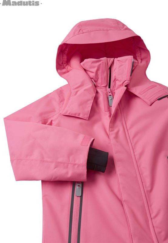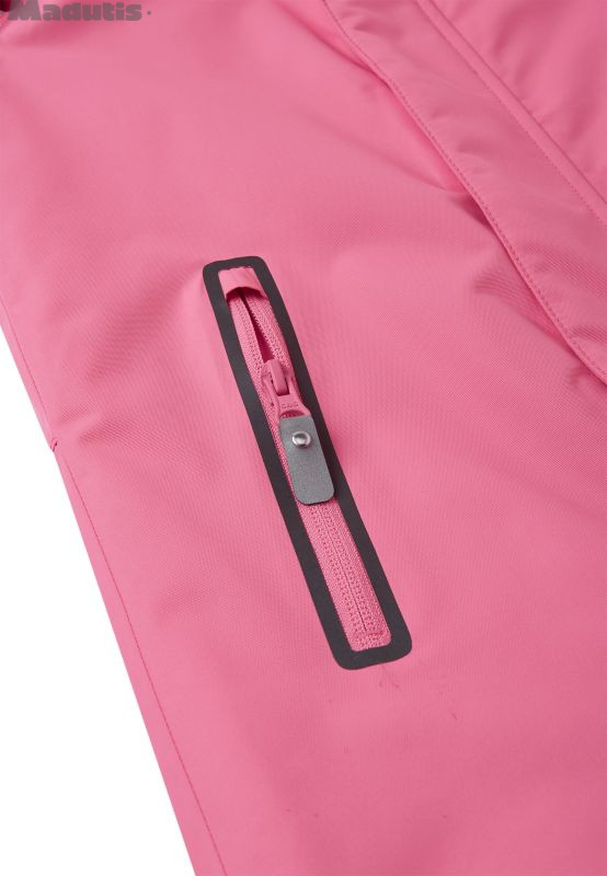 Šis vandeniui atsparus vaikiškas „Reimatec“ sniego kostiumas turi sandarias siūles, apsaugančias nuo drėgmės.
