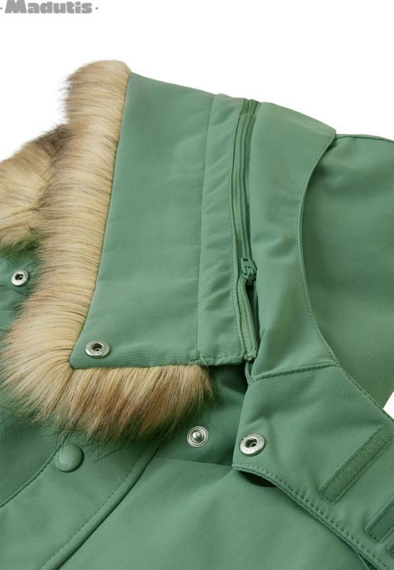 Saugus, nuimamas ir reguliuojamas gobtuvas su nuimama dirbtinio kailio apdaila