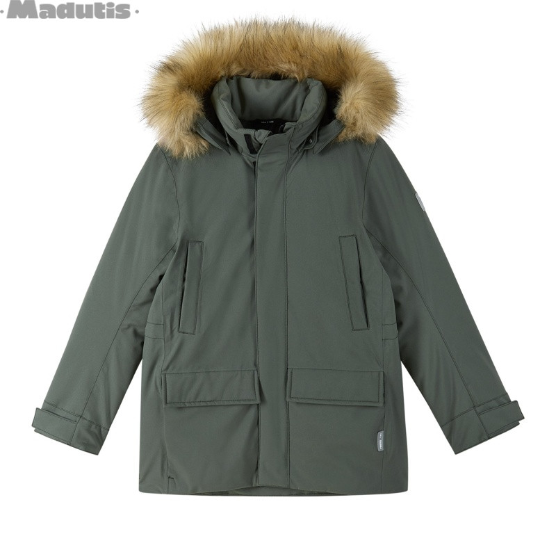 Striukė turi saugų, nuimamą gobtuvą, papuoštą dirbtiniu kailiu, reguliuojamus rankogalius ir juosmens reguliavimą, kad būtų patogu.