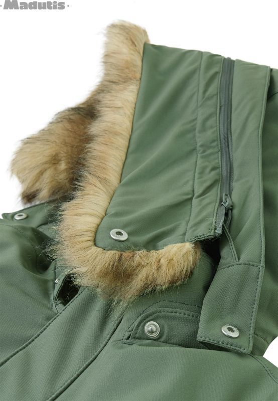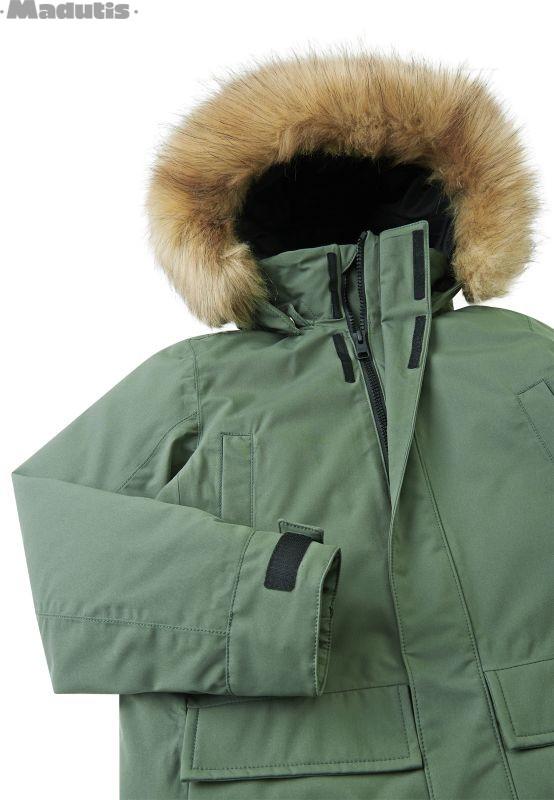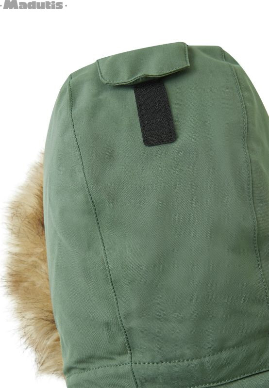 Saugus, nuimamas ir reguliuojamas gobtuvas su nuimama dirbtinio kailio apdaila